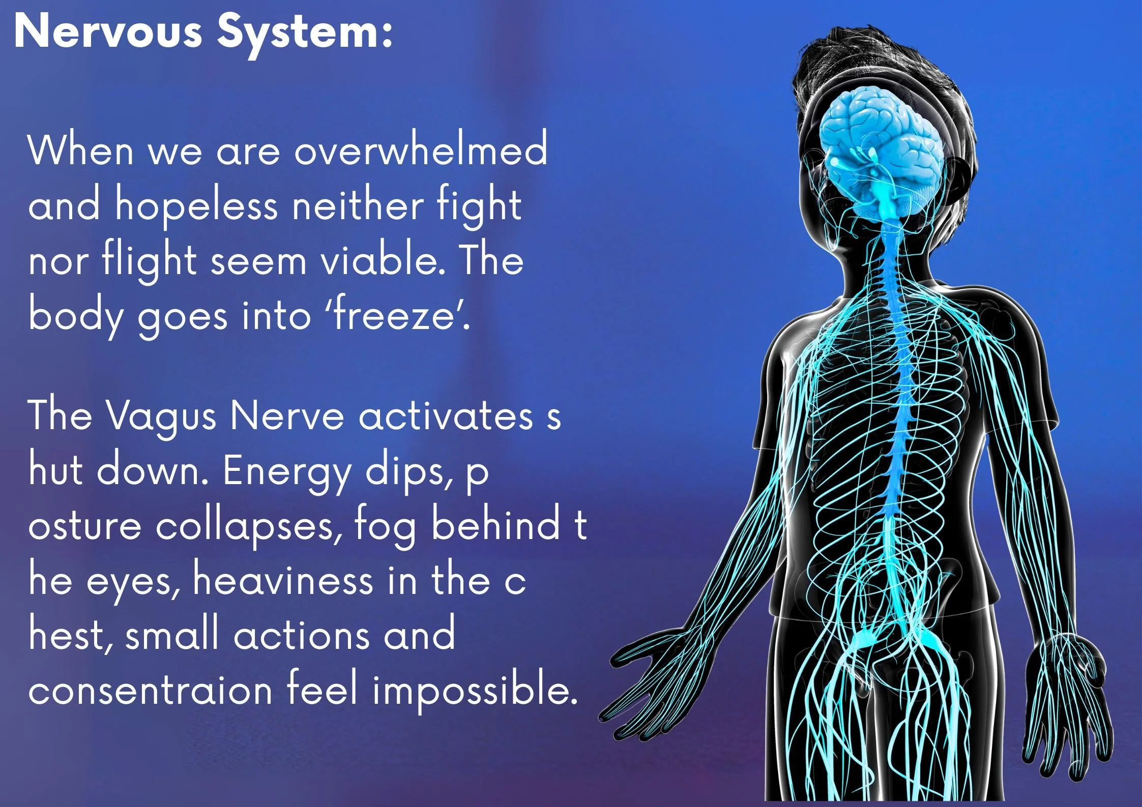 This freeze state is a nervous system response to overwhelm. When neither fight nor flight seem viable, the body chooses stillness. It’s not laziness or weakness — it’s biology.